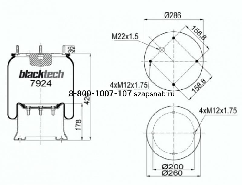Пневморессора Fruehauf, ROR, SAf (со стальным стаканом (P10 813 C) (003615E)