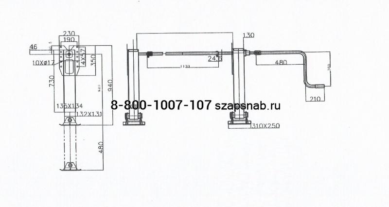 Комплектация: опора правая с редуктором, опора левая без редуктора, вал соединительный, ручка привода.